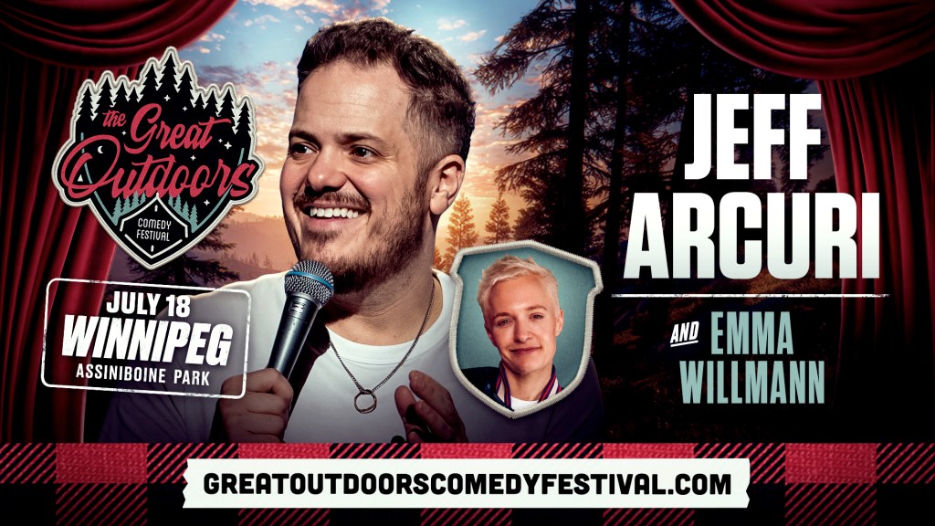 Jeff Arcuri will headline Saturday afternoon of this summer’s Great Outdoors Comedy Festival, July 18th in Assiniboine Park with Emma Willmann.