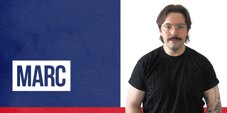Marc is originally from Calgary, but since he’s allergic to horses could never do the fake cowboy shtick. He has a cat, too many short shorts, and at least 12 report cards saying “Marc is a constant distraction in class…if only he’d apply himself”.